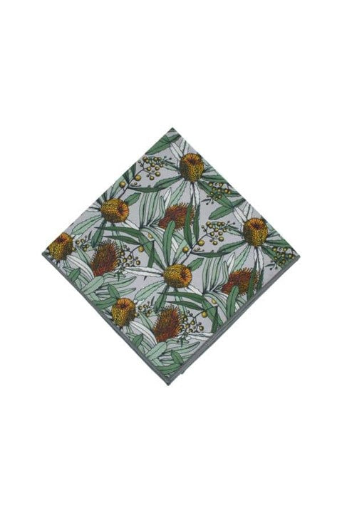 The pocket square - Banksia Grey will take your suit to the next level and have you looking sharp. Our design features native banksia flora against a classic grey background.