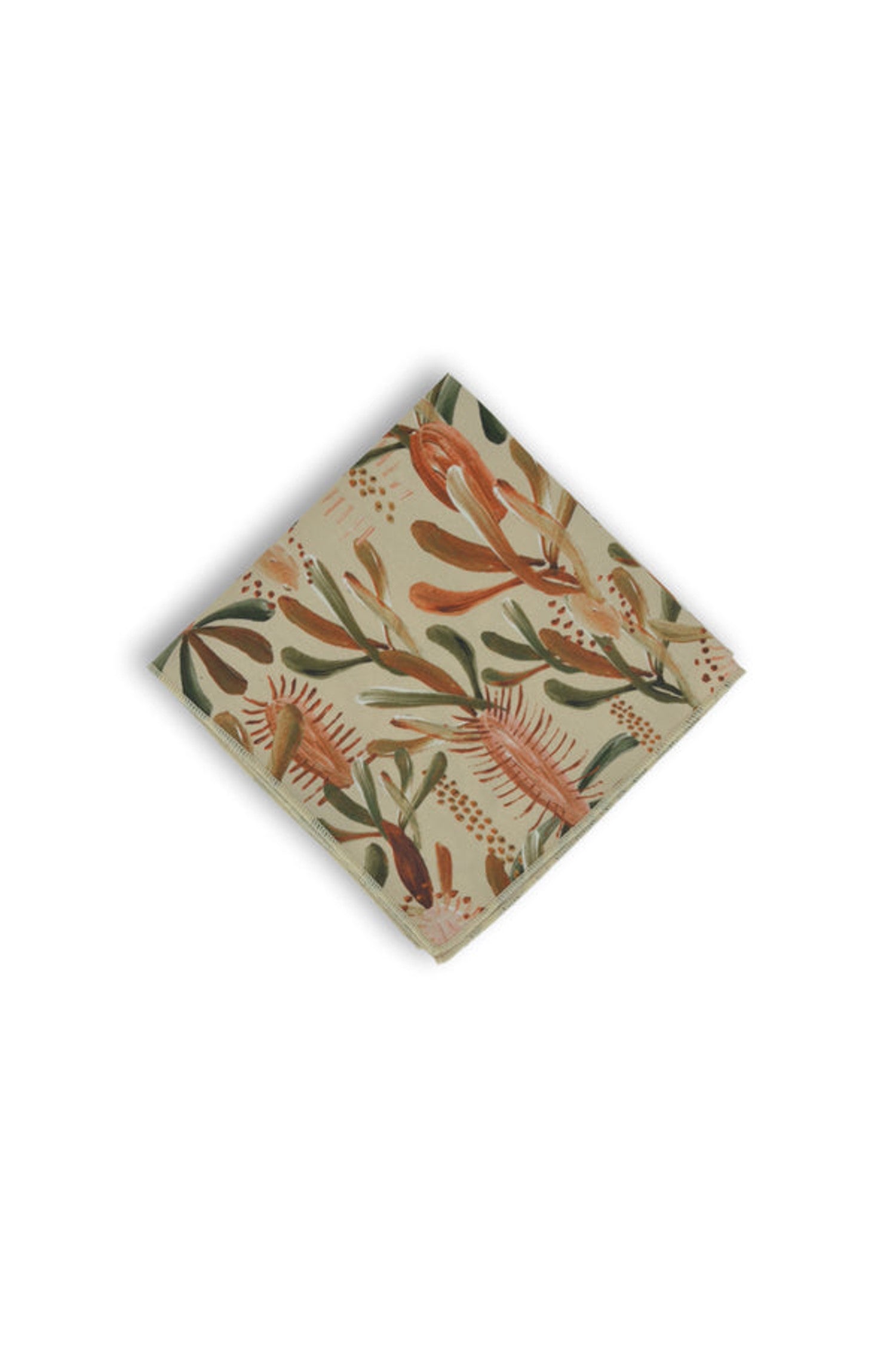 The pocket square - Grass Tree Nude print is inspired by the recent Australian bush fires. The Australian grass tree is stimulated by fire and large numbers of plants can flower and prosper after a wildfire. Grass trees epitomise the Australian bush: they’re beautiful, ancient, hardy and thrive in nutrient-poor soils.