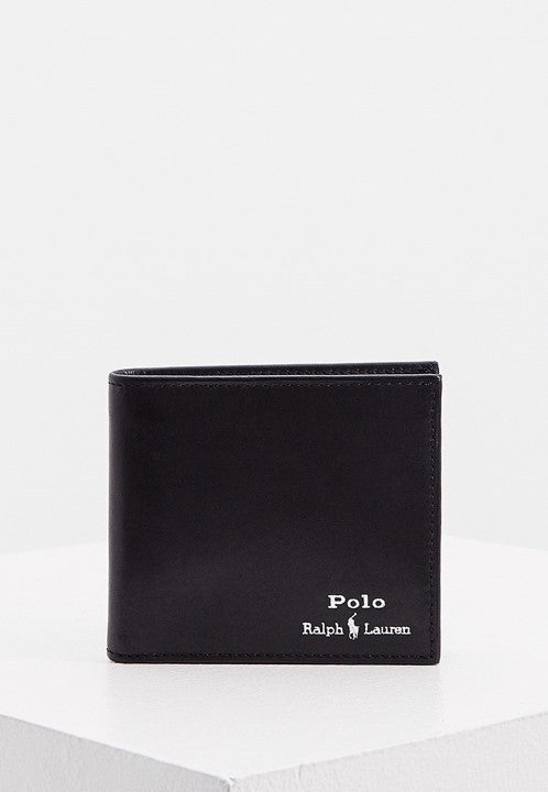 Black calf leather logo-embroidered bifold wallet from POLO RALPH LAUREN