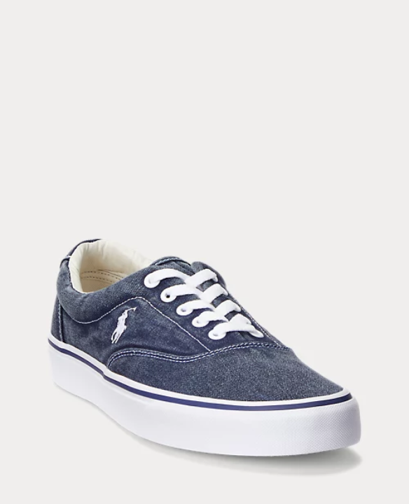 A skate-inspired silhouette and vulcanised construction define this classic low-top trainer. This version is crafted with cotton canvas that is washed for a sun-faded look and finished with Ralph Lauren's signature embroidered Pony
