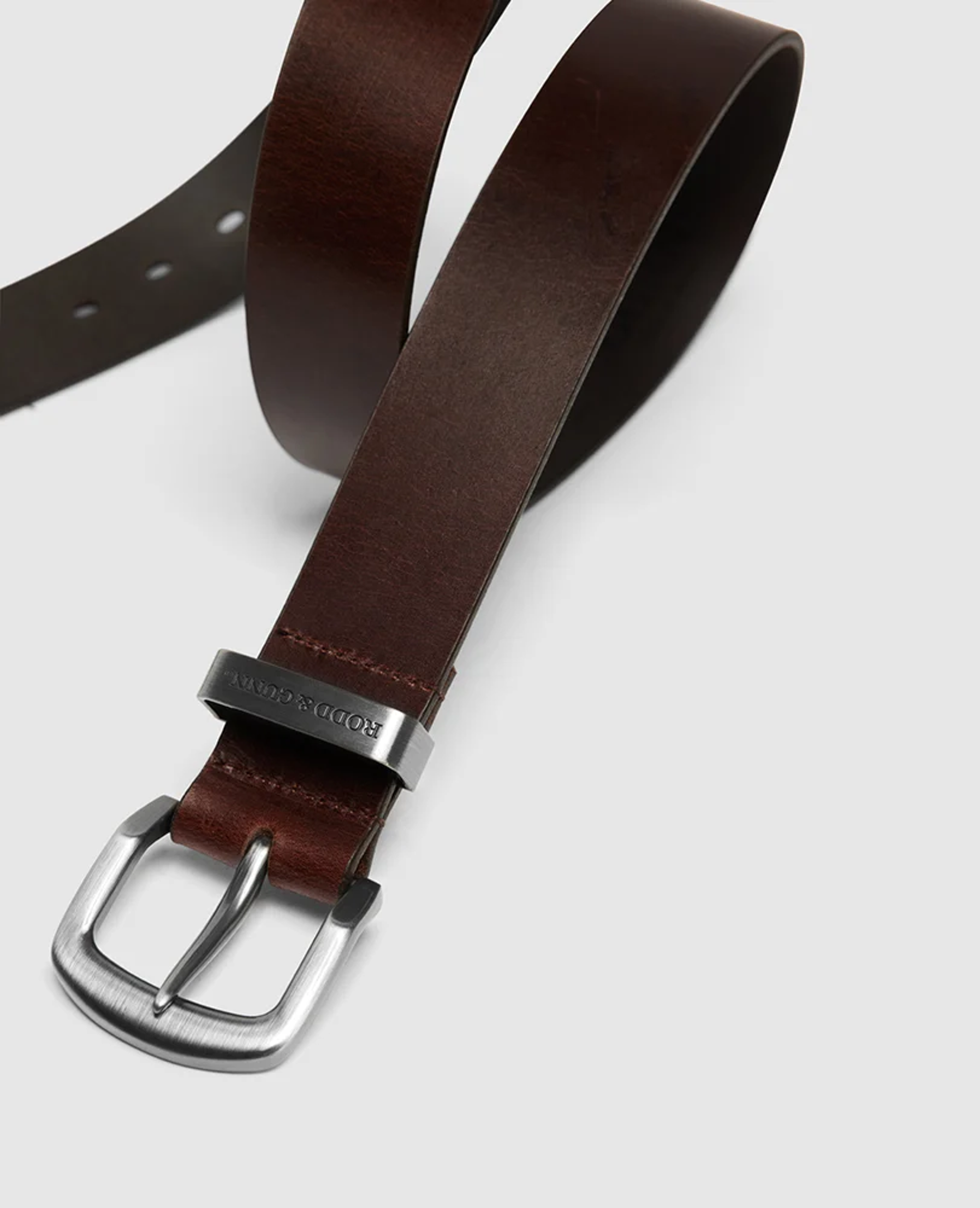 The Farmlands belt is crafted in Australia from thick bovine leather (circa 3.5- 4.2mm) and features a sturdy buckle and Rodd & Gunn keeper. The belt is 38mm wide, and features our pointer heat embossed on the belt end.
