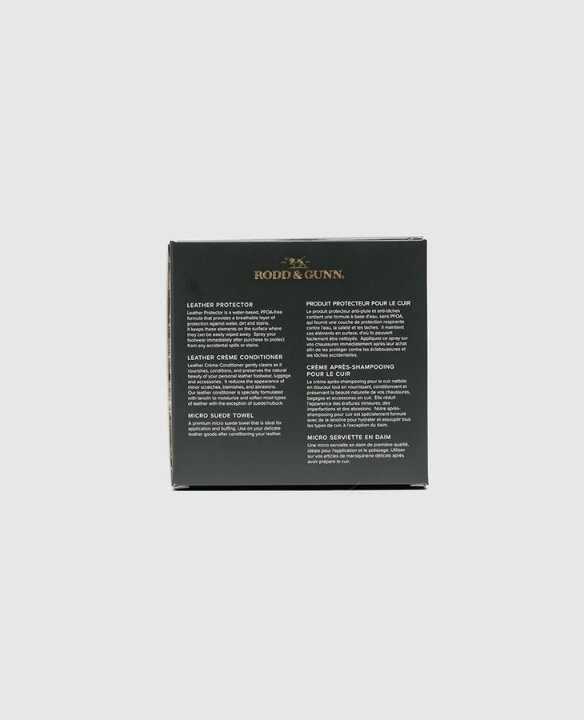 Our premium Leather Care Kits contain what you need to maintain your leather goods in great condition to prolong their life. The Leather protector spray is a water based, PFOA free formula that helps to provide a breathable layer of protection against water, dirt and stains. It keeps these elements on the surface where they can be easily wiped away. The leather Protector Spray can be used most surfaces including leather, suede, nubuck as well as most fabrics including cotton, canvas and wool. Spray your shoes/accessories immediately after purchase, then regularly to maintain the breathable, protective layer. The lanolin formulated Leather Crème Conditioner gently cleans as it nourishes, conditions and preserves the natural beauty of your FULL GRAIN leather products. It helps to reduce the appearance of minor scratches, blemishes and abrasions. Apply a small amount to the leather surface, after removing any excess dirt, using a corner of the soft, micro-suede towel supplied in the box, then buff clean with a dry part of the cloth. Always test any cleaning/protective product on an inconspicuous are of the product before full use