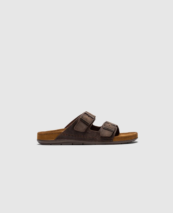 The Raglan Slide is our premium summer sandal. Crafted on an ultra flexible polyurethane outsole, the Raglan features an amazingly soft, padded, suede wrapped moulded footbed, with a leather lined twin strap and buckle upper. The Raglan is perfectly paired with shorts, linen, or cuffed denim or chinos.