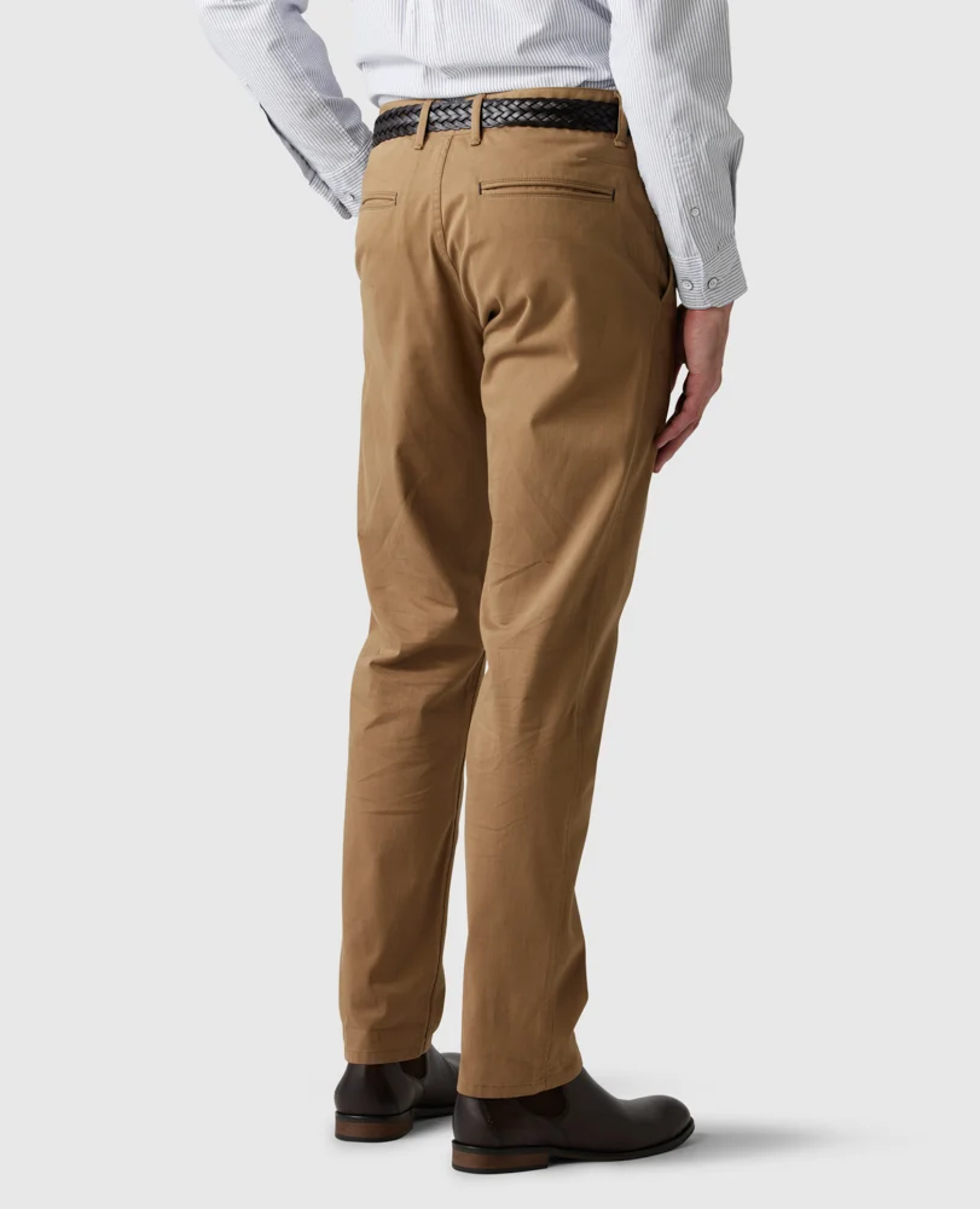 These clean lined chinos are cut from an ultra smooth cotton sateen fabric, with a brushed effect for ultimate comfort. Woven in Italy, and enriched with a small amount of stretch to allow for greater movement and durability. Designed with straight forward chino styling and our popular custom fit.