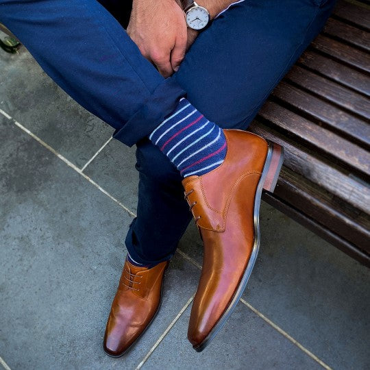 The Duval dress shoe is crafted from a premium quality leather which holds shape and shine. It has a sleek sophisticated vamp, with an antique burnish on the upper. Perfect for business, or any formal event.